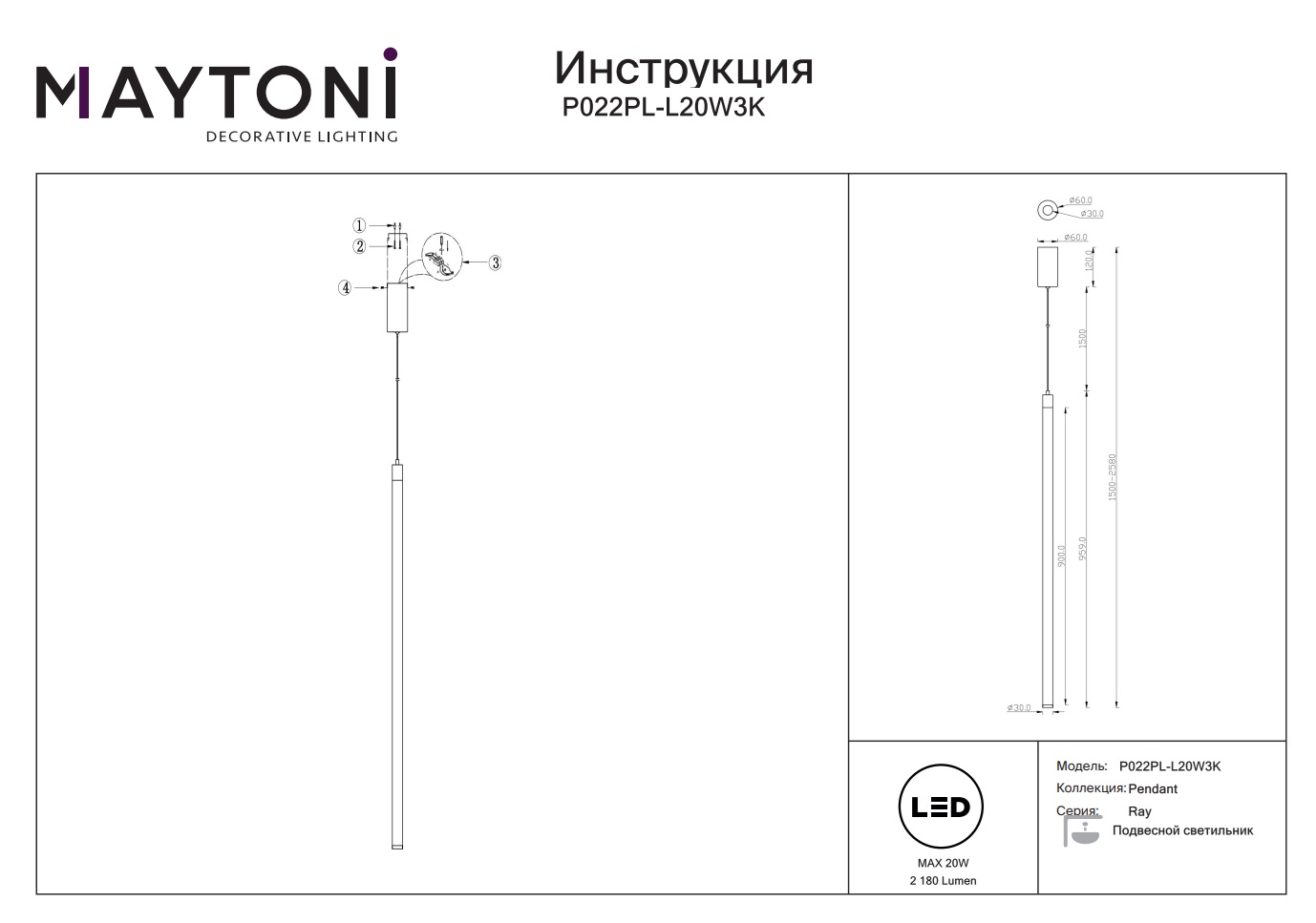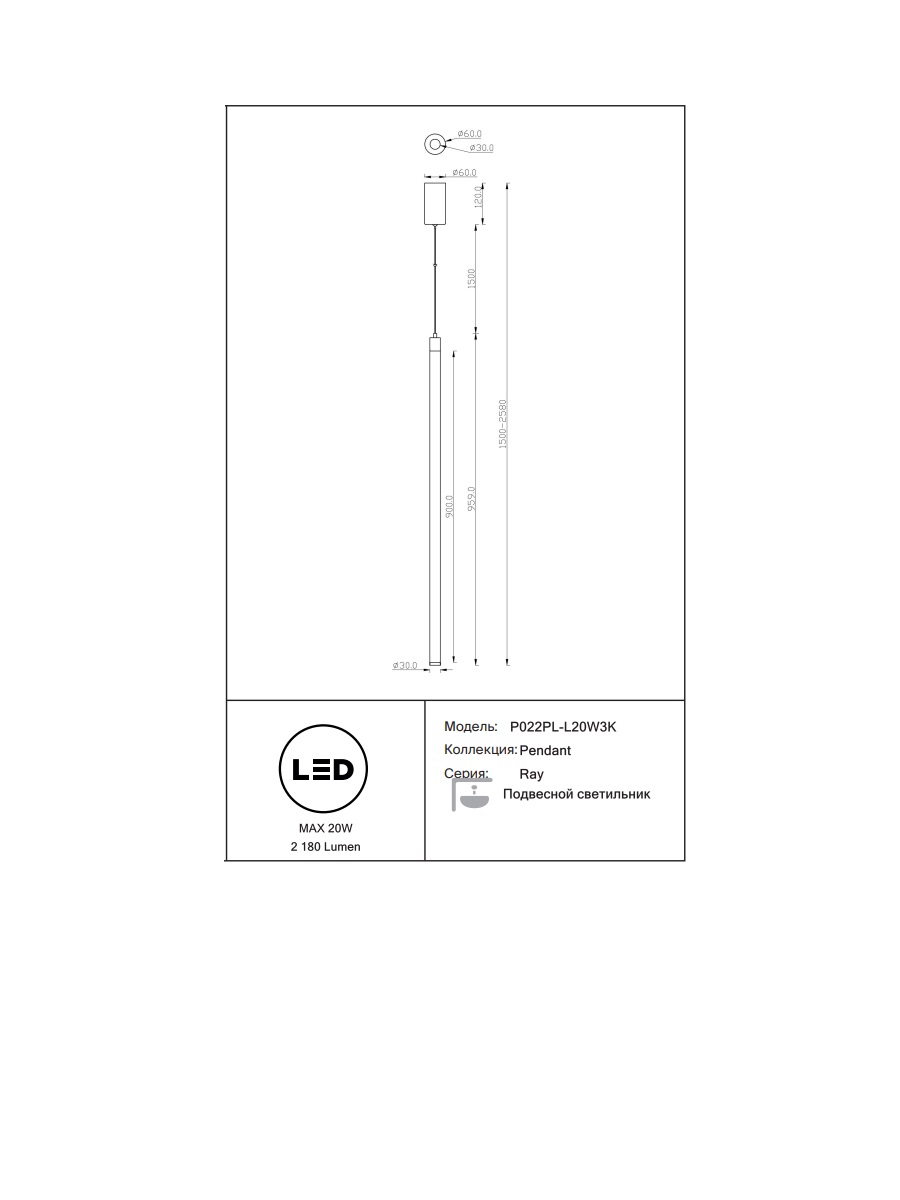 Все характеристики P022PL-L20W3K