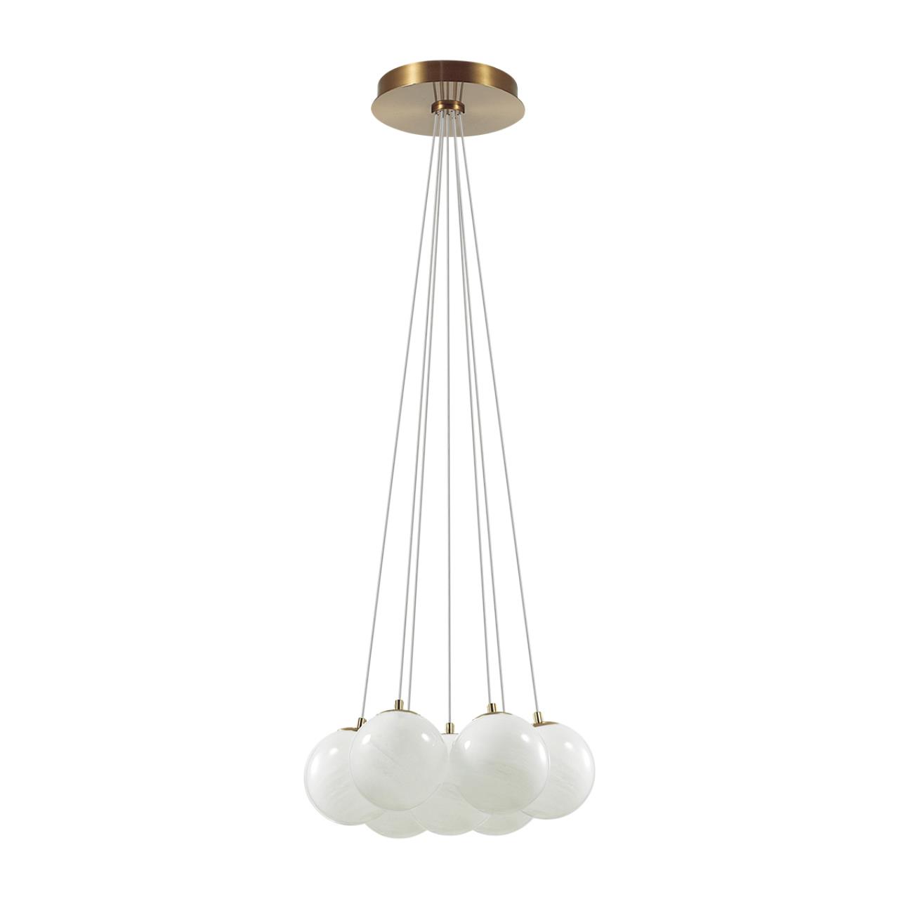 Образ шаров в линии Magia создает воздушную атмосферу. Белое глянцевое молочное стекло выполнено с эффектом облачного узора. Высота регулируется от 600 до 2000 мм. При желании можно использовать декоративное кольцо для сборки проводов. Рекомендуетсяовано использование филаментных ламп с цоколем E14.