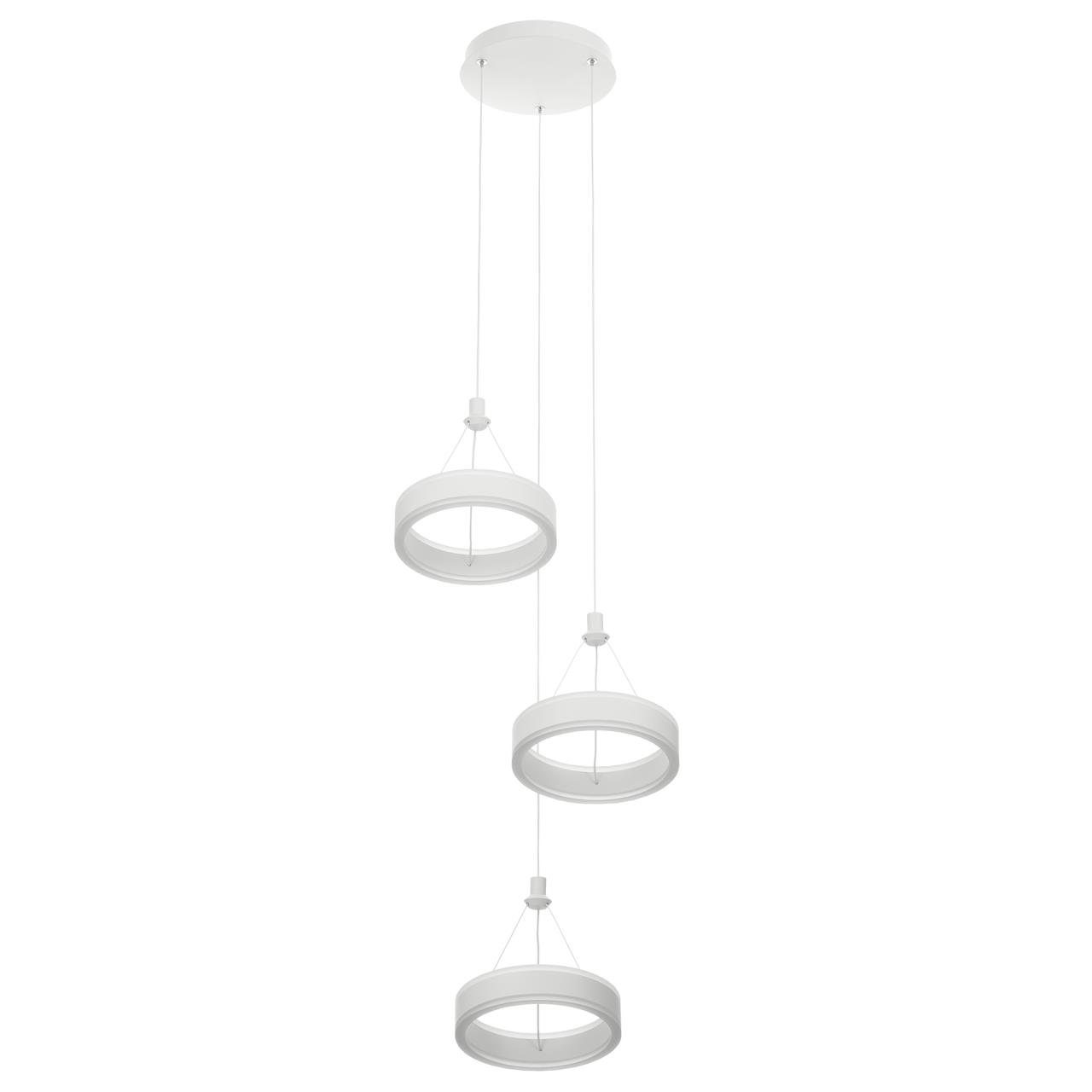 Светодиодный каскадный светильник CL719030 от производителя Citilux относится к коллекции Дуэт выполнен в современном стиле. Корпус металлический, цвет белый матовый. Светильник состоит из круглого основания и трёх подвесных колец. Кольцо - светодиодный модуль, изготовленный из алюминиевого профиля, рассеиватель из оптического полимера. Наличие источников света с двух сторон профиля позволяет равномерно осветить всё помещение. Изделие оснащено встроенным ступенчатым диммером, три уровня яркости – 100-40-15%, управляется обычным настенным выключателем. Мощность 60Вт, цветовая температура 4000К - нейтральный белый свет без мерцания и пульсаций. Крепление подходит для всех видов потолков, в том числе натяжных, тип крепления – планка ,страна бренда Дания.Купить модель CL719030 спешите в интернет-магазине 220svet.