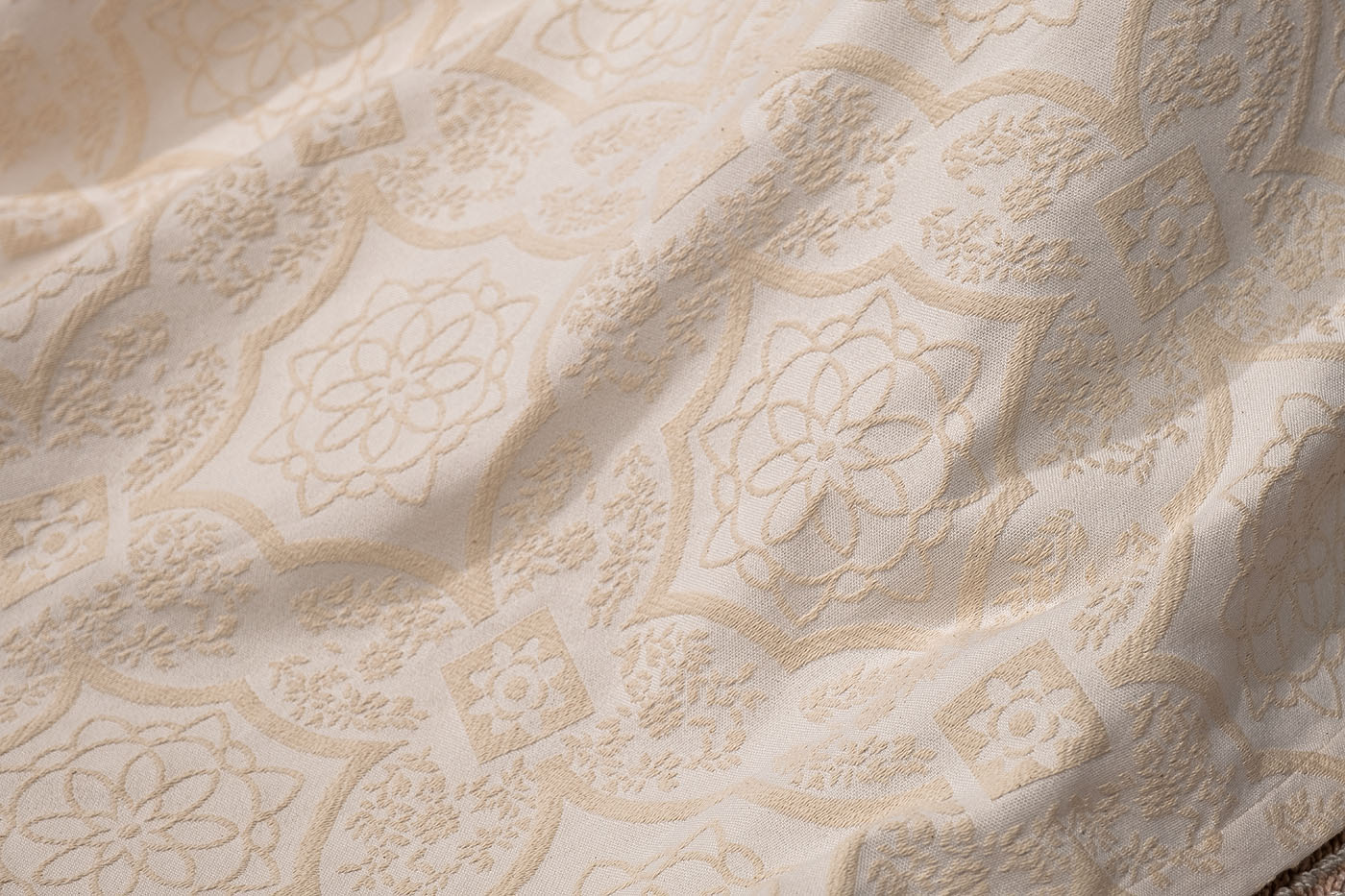 Легкое покрывало «Тиара» изготовлено из экологичного хлопка в сочетании с практичным и долговечным полиэстером. Ткань легко чистится и стирается в домашних условиях, быстро сохнет. Добавление полиэфирного волокна увеличивает срок службы изделия и его устойчивость к выгоранию. Жаккардовый рисунок в классическом стиле будет актуален во все времена, а пастельные тона прекрасно украсят и дополнят дизайн вашего дома. Покрывало можно использовать как накидку для дневного отдыха, так и летнее одеяло. УХОД: Ручная или машинная стирка при температуре не выше 40 градусов. Гладить при низкой температуре до 110 градусов. Отбеливание запрещено. Барабанная сушка и отжим в стиральной машине при низкой температуре. Сухая химчистка разрешена.