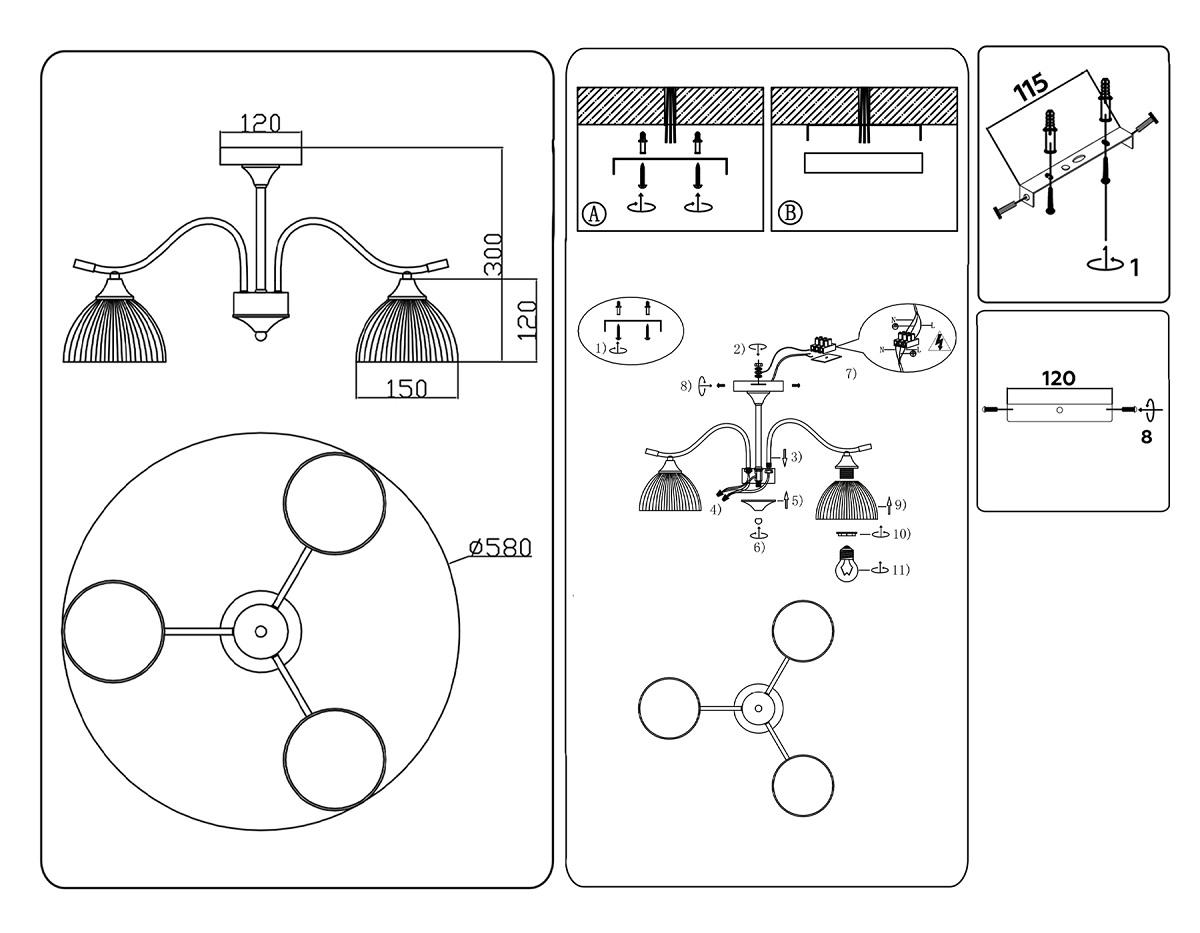- Количество ламп: 3 шт