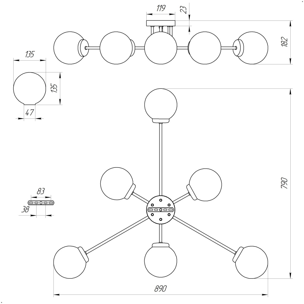 - Форма плафона: Шар