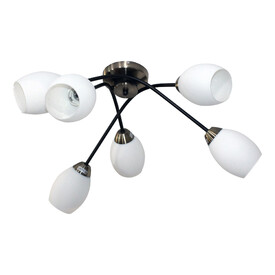 Люстра отлично подойдет для установки на потолок комнаты, оформленной в современном стиле. Потолочная люстра осветит помещение площадью 15 м2. Производитель рекомендует использовать для устройства лампы накаливания с цоколем E27 и мощностью 60 W, а также светодиодные и энергосберегающие лампы. Модель произведена с использованием материалов: стекло и металл. Светильник дает максимум света, плафоны изготовлены из стекла, а это экологичный и долговечный материал. Плафоны легко моются и сохраняют свой безупречный внешний вид на протяжении всего срока эксплуатации. Данную модель 1005404889 можно купить в интернет магазине 220svet.ru