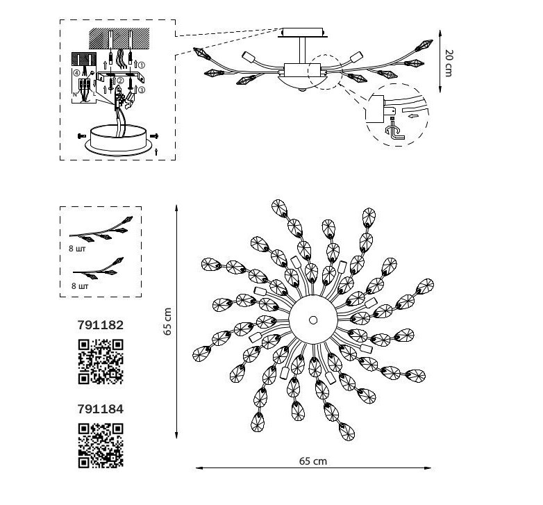 - Количество ламп: 8 шт