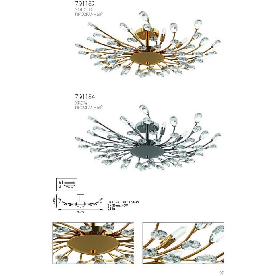- Материал плафонов: Хрусталь