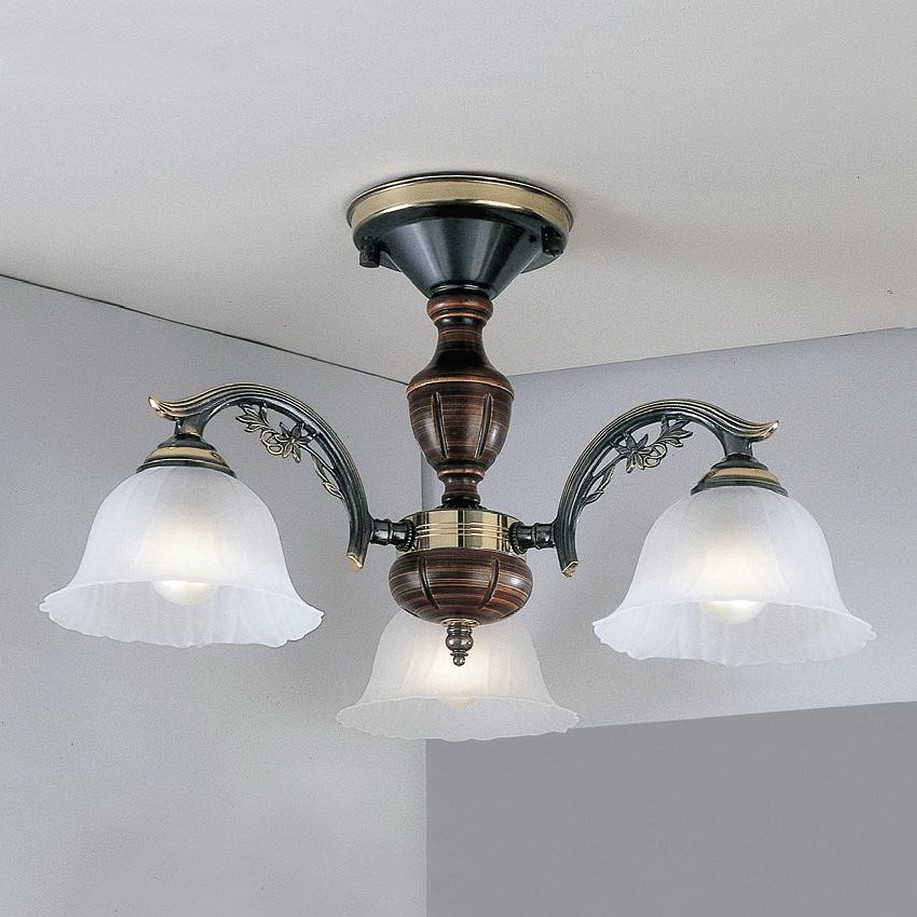 Потолочная люстра Reccagni Angelo PL 2700/3 Итальянского производсва – отличный выбор для Вас. Этот светильник Классического стиля хорошо подойдет Для спальни и придаст помещению мягкий и приятный свет. Плафоны белые из стекла. Арматура бронза из металла. Кол-во ламп - 3шт. Общая мощность 180W