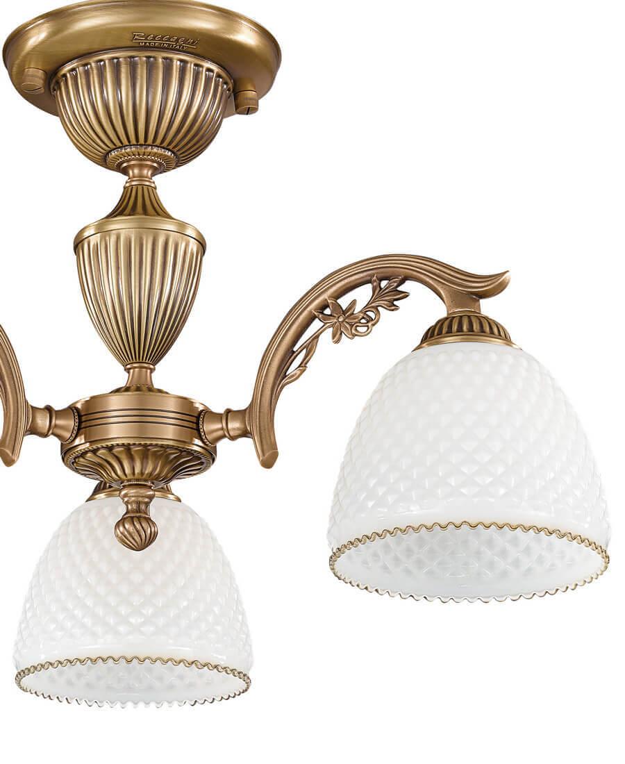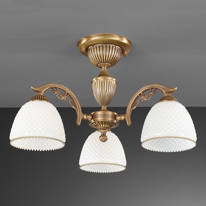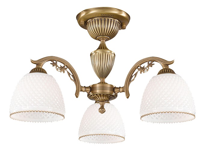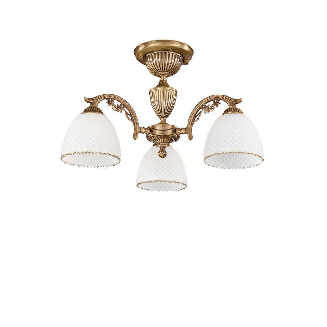 Потолочная люстра Reccagni Angelo PL 8621/3 Итальянского производсва – отличный выбор для Вас. Этот светильник Классического стиля хорошо подойдет Для спальни и придаст помещению мягкий и приятный свет. Плафоны белые из стекла. Арматура бронза из металла. Кол-во ламп - 3шт. Общая мощность 180W