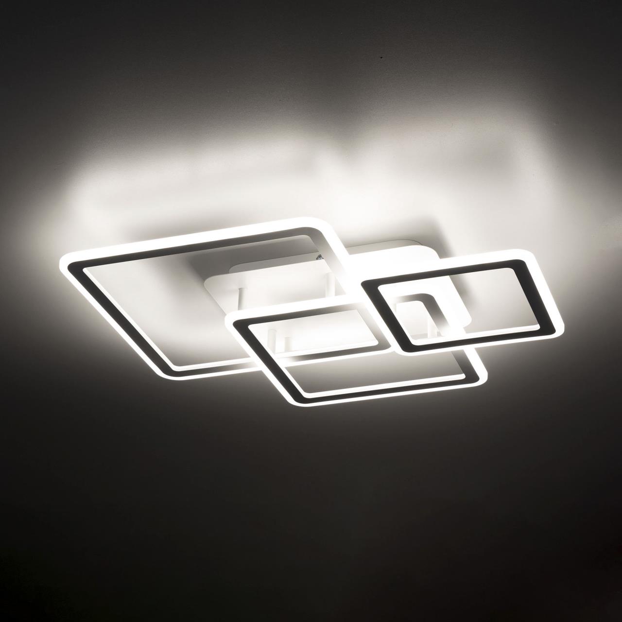Светодиодная потолочная люстра CL238230E от производителя Citilux относится к коллекции Тринити с пультом дистанционного управления выполнена в современном стиле. Корпус металлический, цвет белый матовый. Основание и три светодиодных модуля - плафона, формирующих внешний вид люстры, квадратной формы. Люстрой можно управлять с помощью пульта ДУ и настенным выключателем. Изделие оснащено яркими светодиодами, с возможностью плавной регулировки яркости от 10 до 100%. Цветовая температура регулируется в диапазоне 3000К - 5500К, позволяя настроить любые оттенки теплого, нейтрального или холодного света, без мерцания и пульсаций. Есть красочная RGB подсветка основания с различными вариантами работы, настраиваемые режимы памяти и таймер выключения. Модель подходит для всех типов потолков, в том числе натяжных, тип крепления – планка. Пульт ДУ в комплекте, тип батареек ААА (в комплект не входят, приобретаются отдельно). Люстра плоская – высота всего 11см, размер 65,5х51см, мощность 70Вт, световой поток 5400Лм, осветит до 21м² , страна бренда Дания . Купить модель CL238230E спешите в интернет магазине 220svet.ru