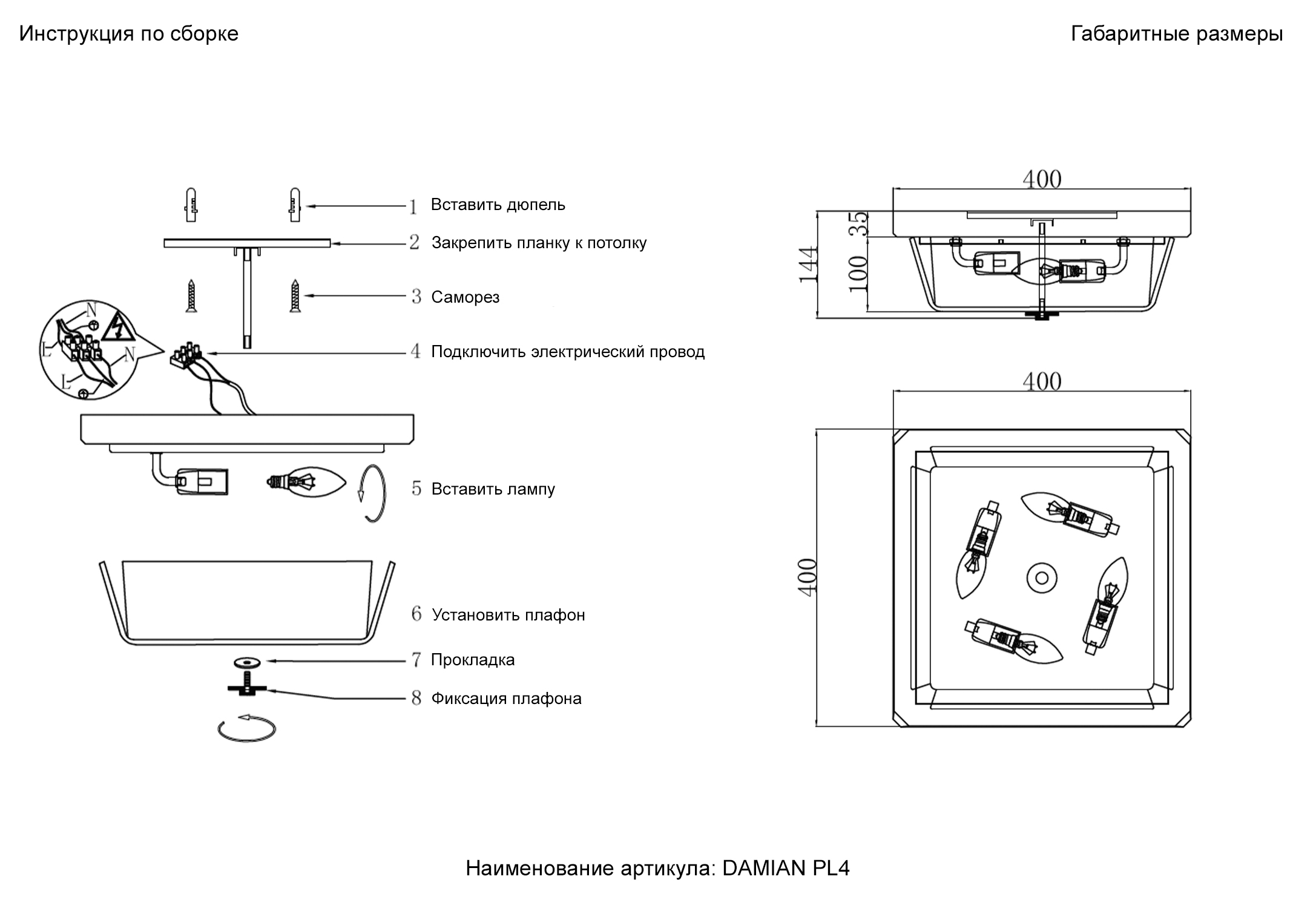 - Количество ламп: 4 шт