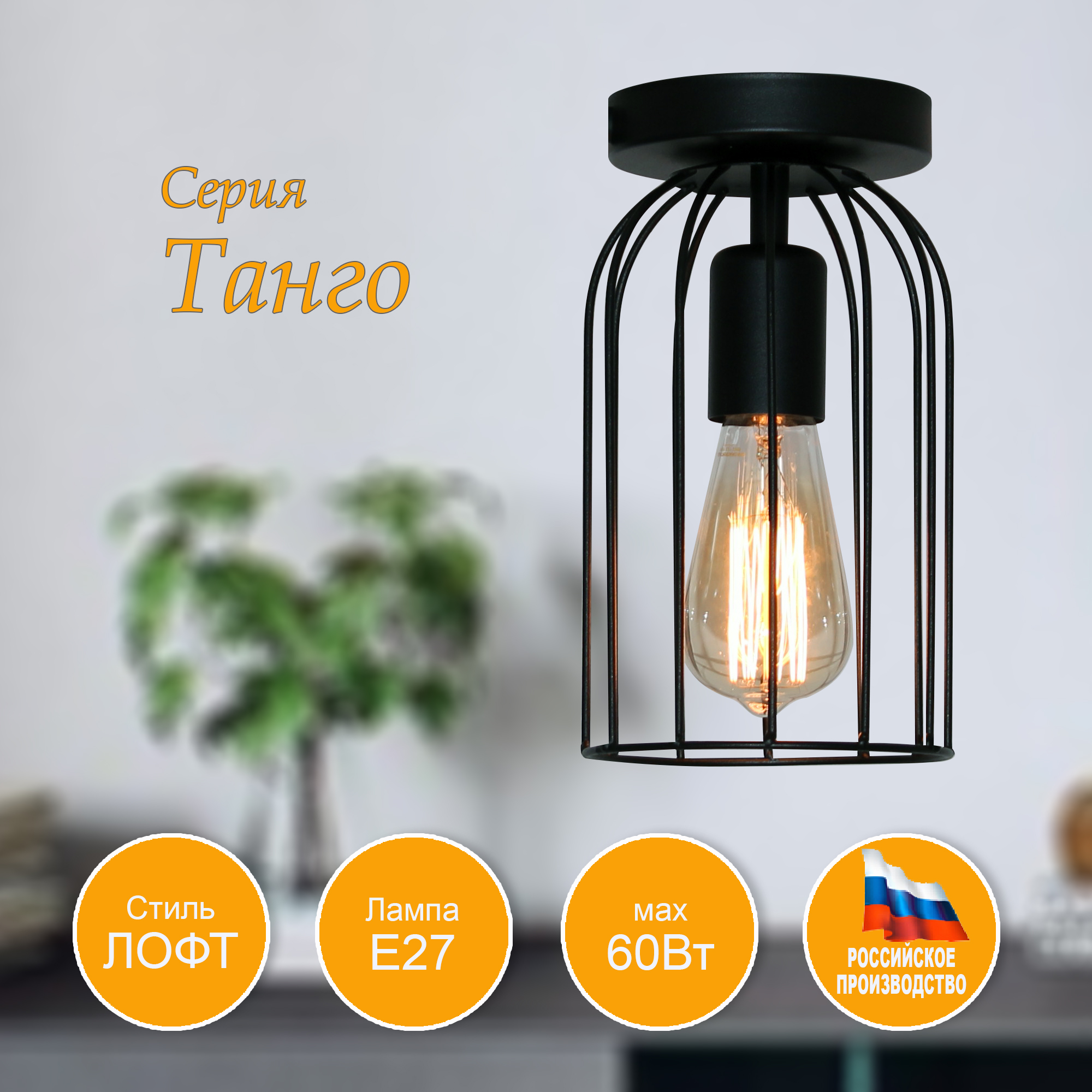 Модель из коллекции "Танго" отлично подойдет для установки на потолок помещения, оформленного в стиле Лофт. Потолочный светильник с плафоном из металлических прутьев осветит помещение площадью около 7 м2. Производитель рекомендует использовать для устройства лампы накаливания с цоколем E27 и мощностью 60 W или светодиодные (филаментные/классические) лампы. Прибор произведен с использованием материала: металл. Может использоваться для натяжного потолка. Лампы в комплект не входят. Данную модель 1005405021 можно купить в интернет магазине 220svet.ru