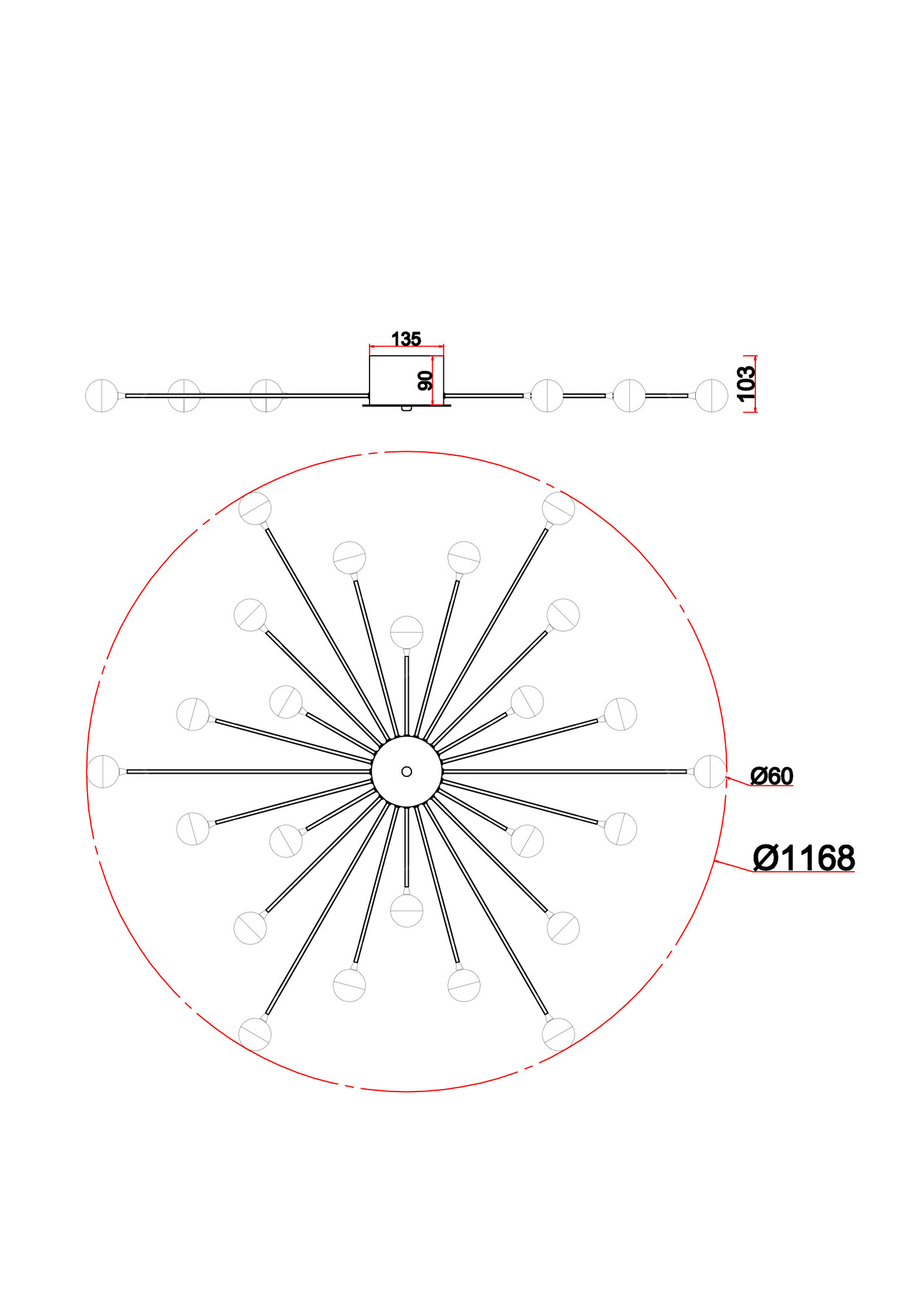 - Диаметр: 1168 мм (116.8 см)