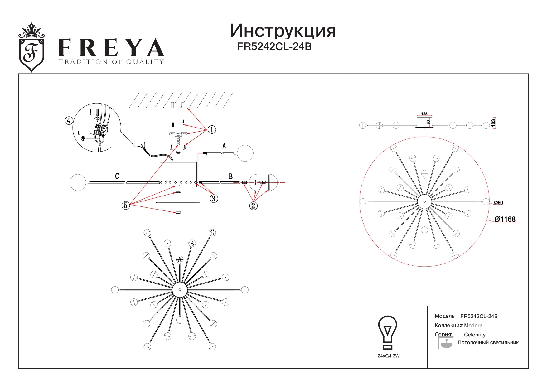 Купить "Потолочная люстра Freya Celebrity FR5242CL-24B"