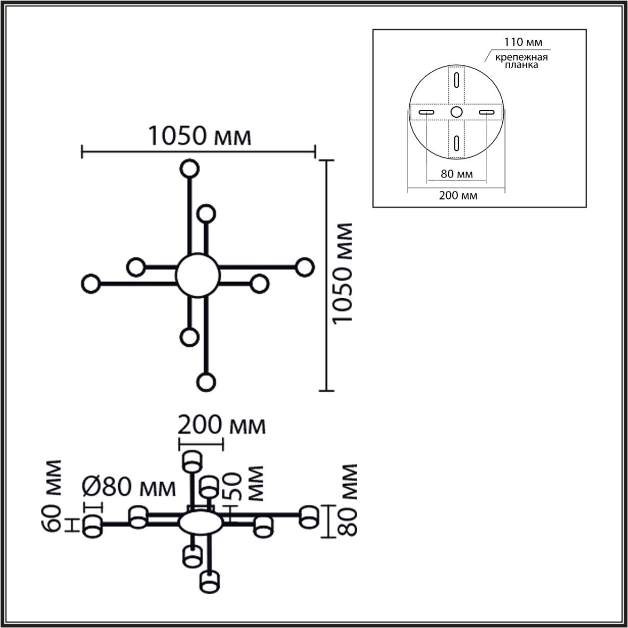 - Количество ламп: 8 шт