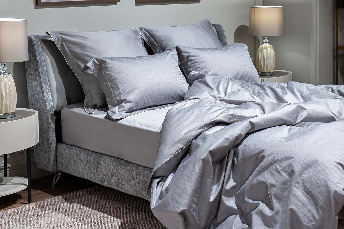 Купить "Простыня на резинке сатин серый Garda Decor 130HB-FSH16030 -PROS RES SER"
