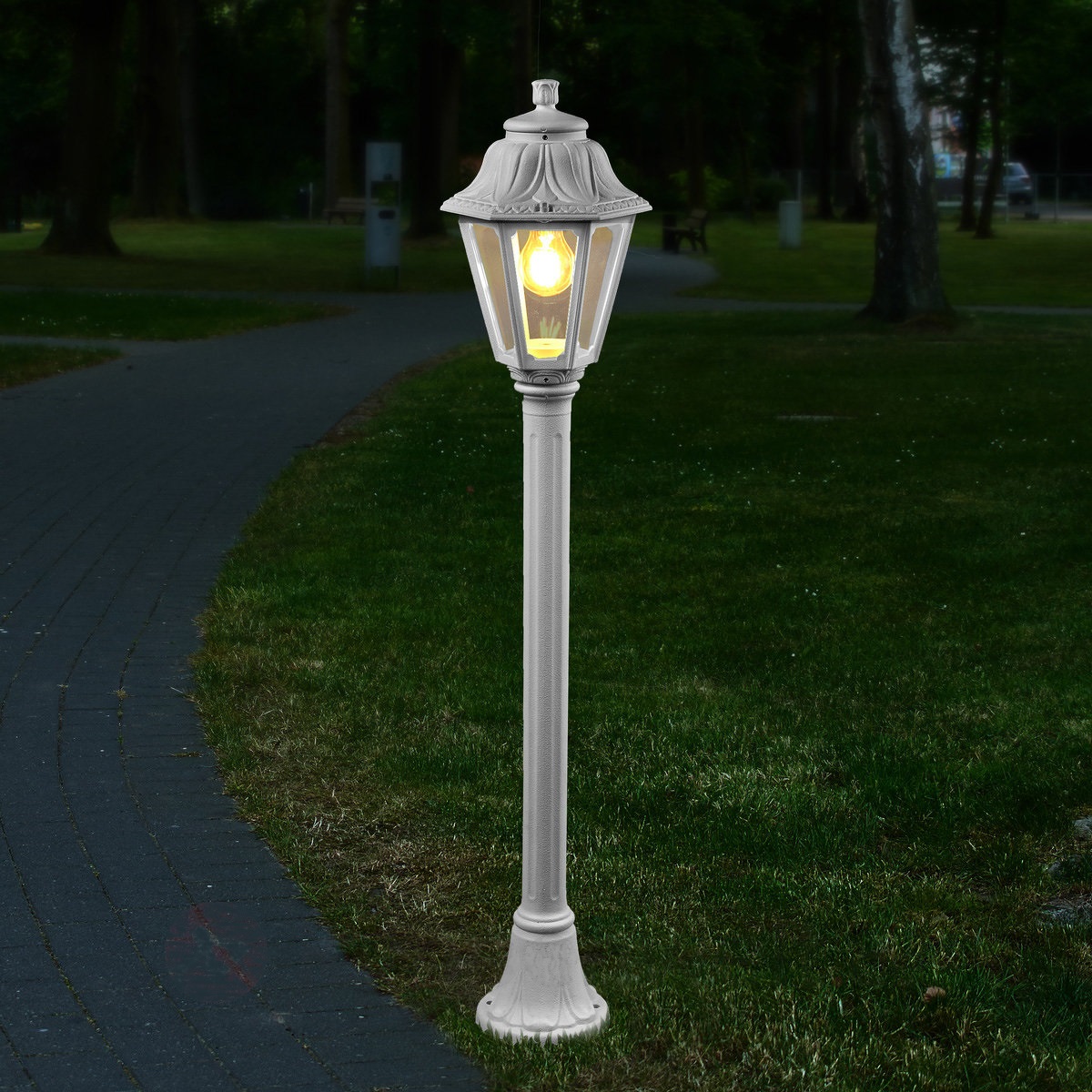 Садовый светильник-столбик FUMAGALLI серии ANNA, модель ANNA/MIZAR.R. Столбик освещения MIZAR.R и светильник ANNA. Используются для архитектурного и ландшафтного освещения в стиле "классика". Место установки столбиков освещения - парковые дорожки, тротуары, газоны в парках и скверах, а так же ландшафтные и архитектурные объекты. Изготовлены в Италии, по уникальным технологиям "FUMAGALLI" из современного композитного полимера RESIN. Этот материал в 5 раз прочнее металла, не ржавеет, не окисляется, не выгорает на солнце, его не нужно красить. Все светильники пыле-влаго защищены по стандарту IP55 (защита от пыли, защита от струй воды, падающих под любым углом). Рассеиватель выполнен из антивандального, не мутнеющего и не горючего PMMA (ПолиМетилМетаАкрилат). Срок службы светильника - не менее 20 лет. Температура использования от -60 до +90. В серии ANNA есть фонари в настенном (BISSO/ANNA, PORPORA/ANNA) подвесном (SICHEM/ANNA, SICHEM/ANNA 3L) и наземном исполнении (IAFAET.R/ANNA, ALOE.R/ANNA, ARTU/ANNA, GIGI/ANNA, RICU/ANNA, RICU/ISSO/ANNA 1L, RICU/ISSO/ANNA 2L, RICU/ISSO/ANNA 3L) со столбами разной высоты, с разным количеством и конфигурацией голов. Консоли настенных фонарей и кронштейны светильников на столбах освщения могут устанавливаться вверх/вниз. Столбы выше 150 см имеют в основе мощную стальную трубу с двойной оцинковкой. При заказе требуется выбрать цвет корпуса, цвет плафона и тип патрона (Е-27 или LED GX-53). Возможен светодиодный вариант. По стилю и дизайну серия уличных светильников ANNA похожа на светильники среднего размера серии RUT и на светильники большого размера серии NOEMI. По размеру ANNA относится к малым светильникам как серия SABA и GLOBE 250.