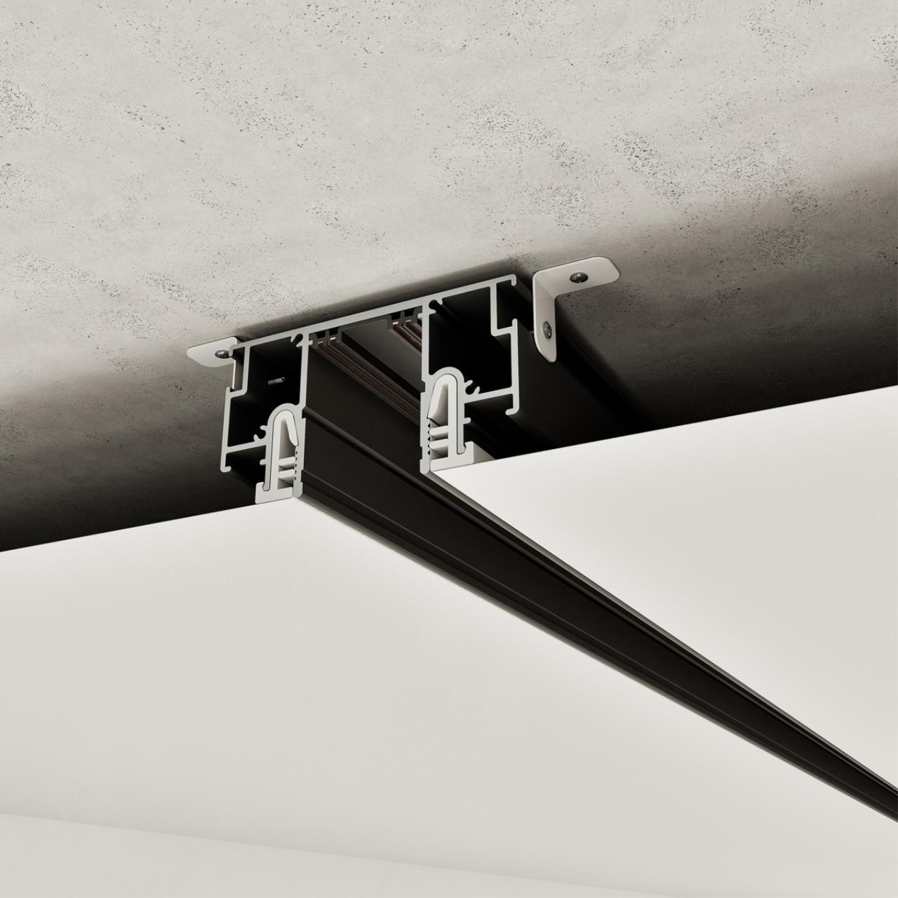Шинопровод CLAMP for NOVOTECH специально разработан для интеграции в натяжные потолки и совместной работы с трековыми светильниками VECTOR (220В). Эта уникальная система сочетает алюминиевый профиль с токопроводящими жилами и специальную технологию крепления CLAMP, позволяющую легко и надежно зафиксировать тканевые и ПВХ-полотна без риска их повреждения. За счёт увеличенной камеры узла примыкания CLAMP, обеспечивается высокая прочность фиксации и простота монтажа, что выгодно отличает данное решение от аналогов.