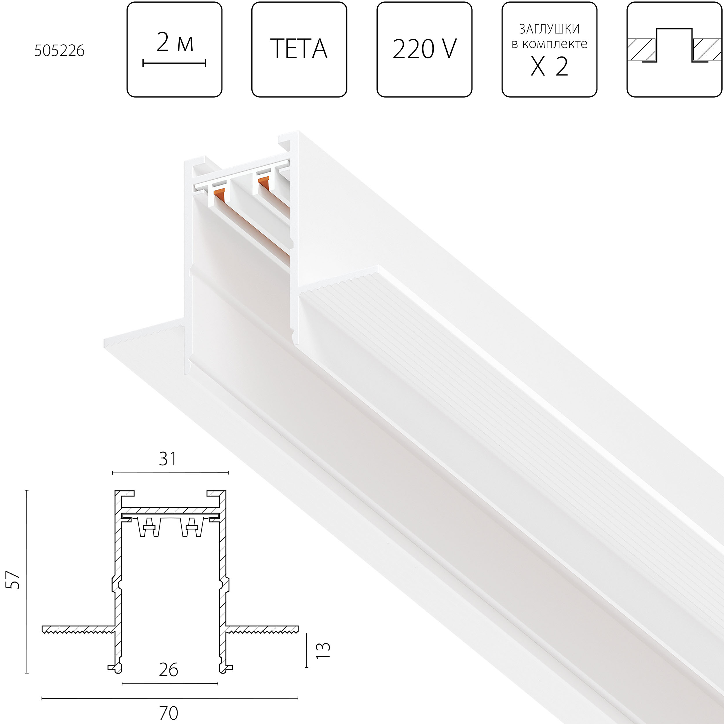 Купить "Шинопровод однофазный в ГКЛ Lightstar Teta Pro 505226"