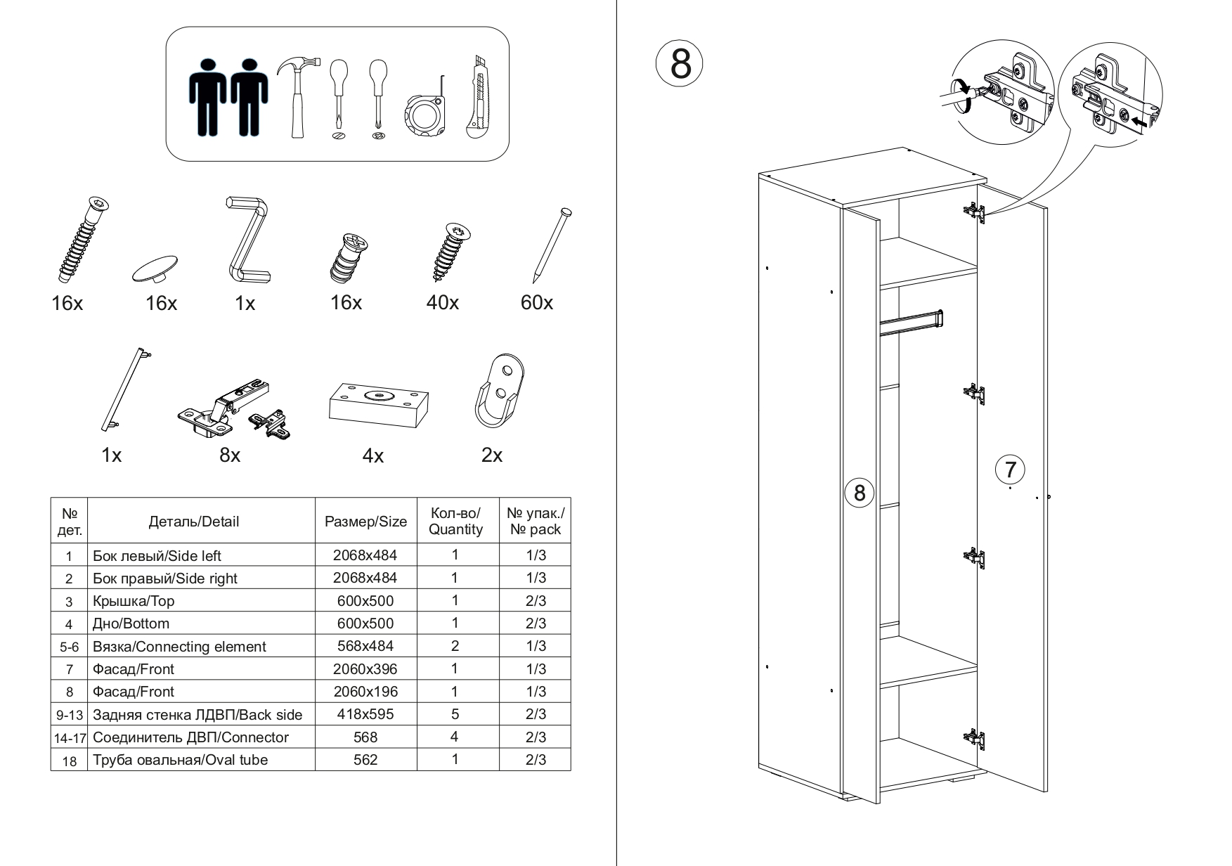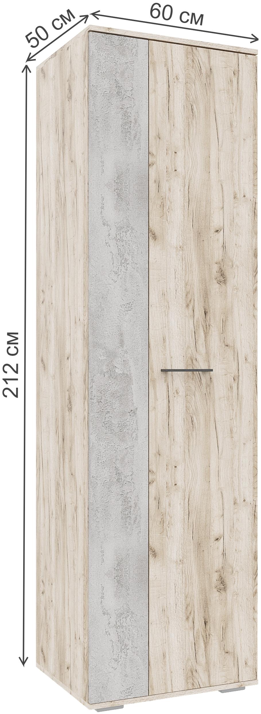 Материал каркаса - ЛДСП; Цвет каркаса - Дуб крафт серый / бетонный камень; Ширина - 60; Глубина - 50; Высота - 212;