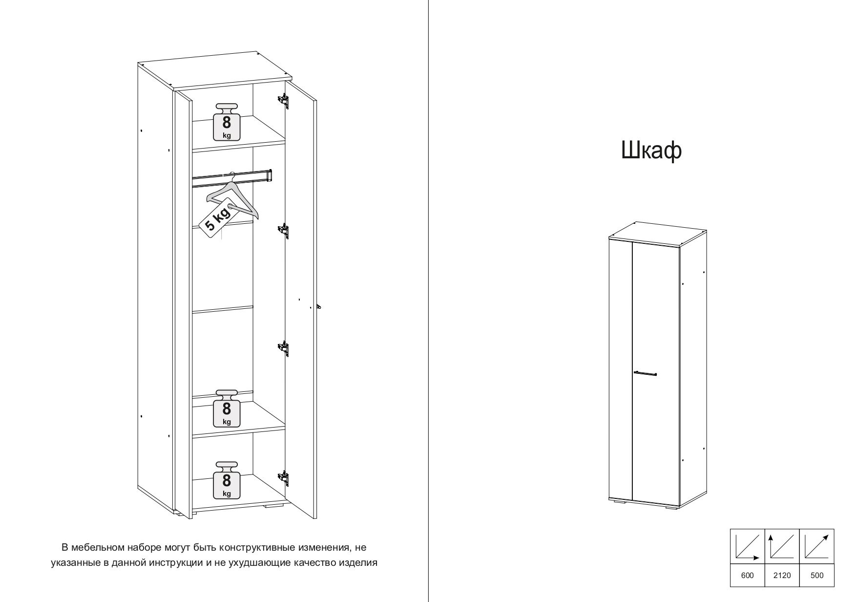 - Высота: 2120 мм (212 см)