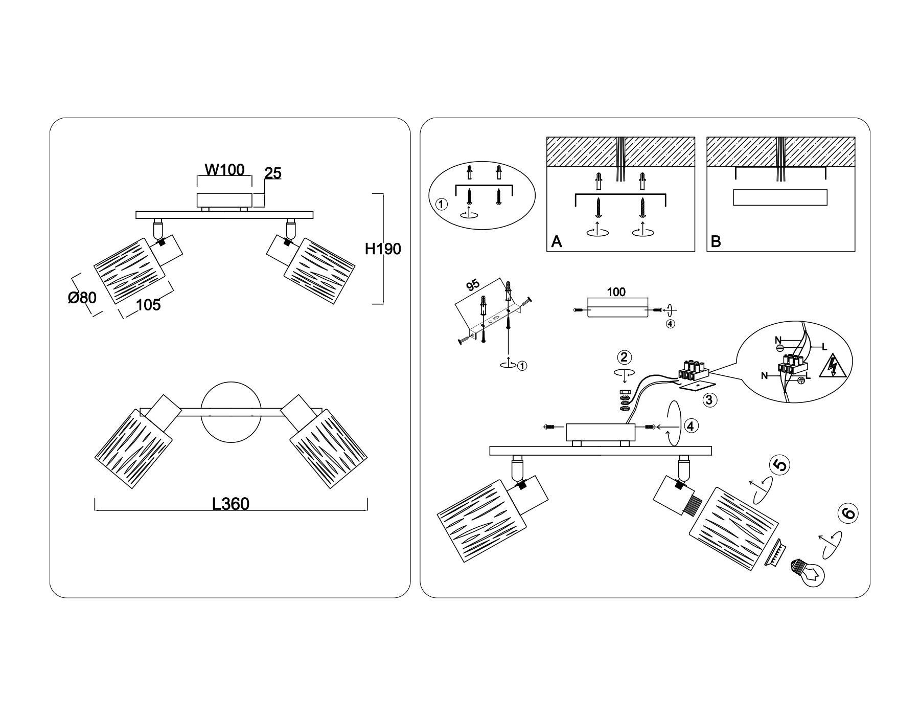 - Количество плафонов: 2