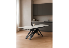 Керамический стол раздвижной Woodville Блэкберн 160(220)х89 белый мрамор snow white / черный 625943