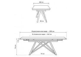 Керамический стол раскладной Woodville Вилсон 140(200)х80 серый мрамор larka grey / черный 625959