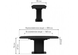 Керамический стол раскладной Woodville Фестер 160(205)х90 snow white / черный 625975