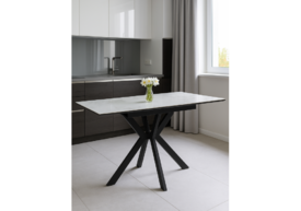 Керамический стол раскладной 120(180)х80 Woodville Норман snow (alpin) white / черный 622885