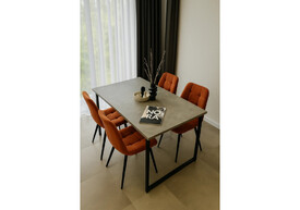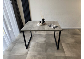 Стол деревянный раскладной Woodville Кортни 120 (160)x80 бетон светлый / черный матовый 619218