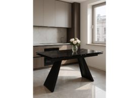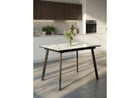 Стол стеклянный раскладной 140(200)х80 Woodville Вилсон белый мрамор / черный 612172