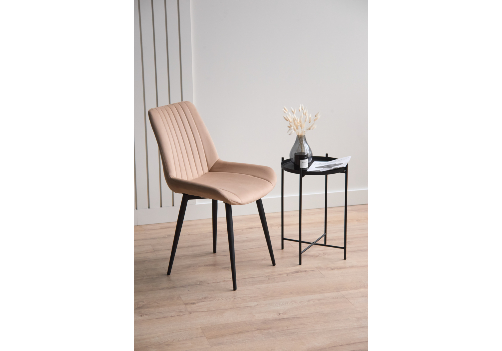 Материал каркаса - металл; Материал сиденья - велюр; Материал обивки - велюр; Цвет ножек - черный; Ширина - 50; Глубина - 56; Высота - 82; Ширина сиденья - 47; Глубина сиденья - 42; Высота сиденья - 48;