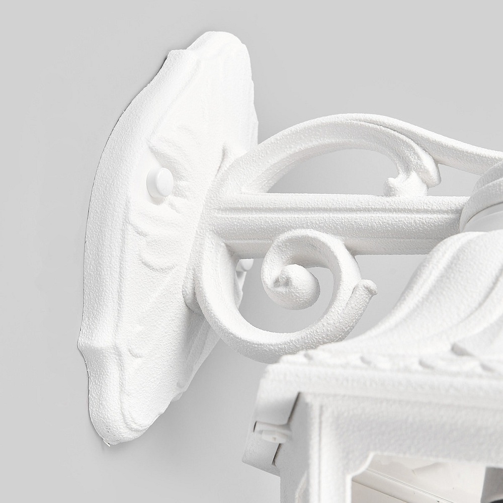 Светильники уличные настенные FUMAGALLI серии SABA, модель SABA/BISSO. Консольный уличный светильник для монтажа на стену. Настенный кронштейн BISSO малого размера и светильник SABA. Используются для фасадного и архитектурного освещения в стиле "классика". Место установки уличных светильников - фасады, колонны и другие вертикальные поверхности исторических зданий, котеджей, загородных домов, церквей, а так же, другие места где требуется и возможна установка фонарей. Изготовлены в Италии, по уникальным технологиям "FUMAGALLI" из современного композитного полимера RESIN. Этот материал в 5 раз прочнее металла, не ржавеет, не окисляется, не выгорает на солнце, его не нужно красить. Все светильники пыле-влаго защищены по стандарту IP55 (защита от пыли, защита от струй воды, падающих под любым углом). Рассеиватель выполнен из антивандального, не мутнеющего и не горючего PMMA (ПолиМетилМетаАкрилат). Срок службы светильника - не менее 20 лет. Температура использования от -60 до +90. В серии SABA есть фонари в настенном (BISSO/SABA, PORPORA/SABA) подвесном (SICHEM/SABA) и наземном исполнении (IAFAET.R/SABA, ALOE.R/SABA, ARTU/SABA, GIGI/SABA, RICU/SABA, RICU/ISSO/SABA 1L, RICU/ISSO/SABA 2L, RICU/ISSO/SABA 3L) со столбами разной высоты, с разным количеством и конфигурацией голов. Консоли настенных фонарей и кронштейны светильников на столбах освещения могут устанавливаться вверх/вниз. Столбы выше 150 см имеют в основе мощную стальную трубу с двойной оцинковкой. При заказе требуется выбрать цвет корпуса, цвет плафона и тип патрона. Возможен светодиодный вариант с цоколем GX-53. По стилю и дизайну серия уличных светильников SABA похожа на светильники среднего размера серии SALEM и на светильники большого размера серии SILOE. По размеру SABA относится к малым светильникам как серия ANNA и GLOBE 250.