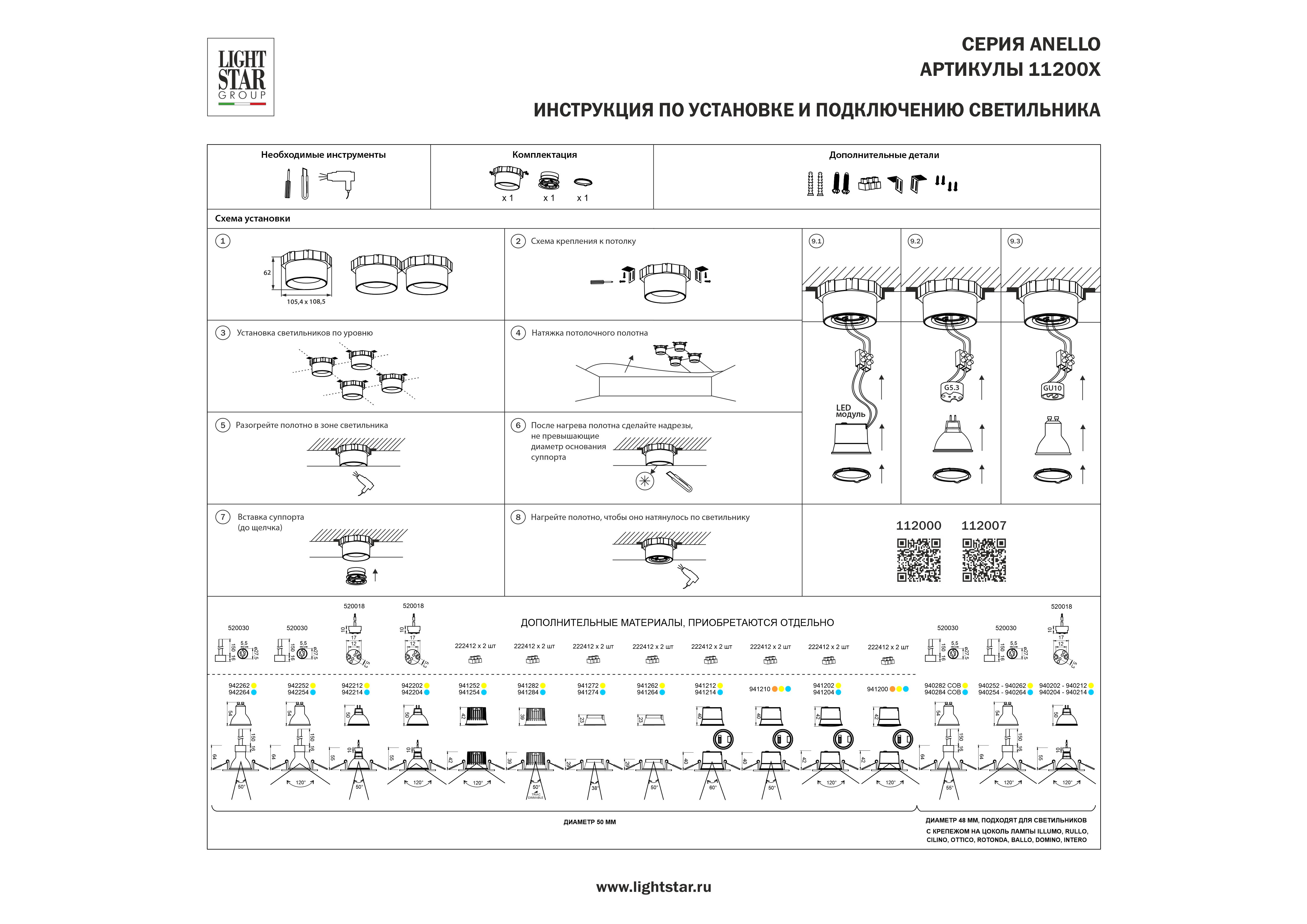Светильник в натяжной потолок Anello Lightstar 112007 в Магнитогорске