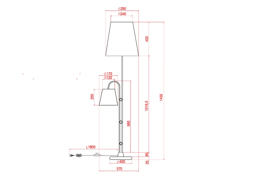 - Форма плафона: Абажур, Конусный