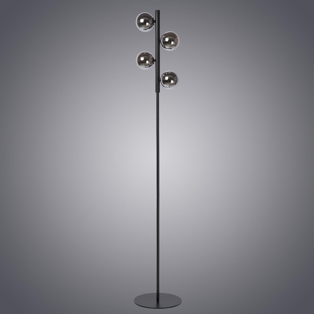 Шикарная модель черного, серого цвета произведена из металла. Плафон - круглый, выполнен из стекла. Стиль торшера - современный, его можно использовать для большого зала, создаст уют и камерность, может служить, как для декоративного освещения, так и для функционального освещения места для чтения книги, например.