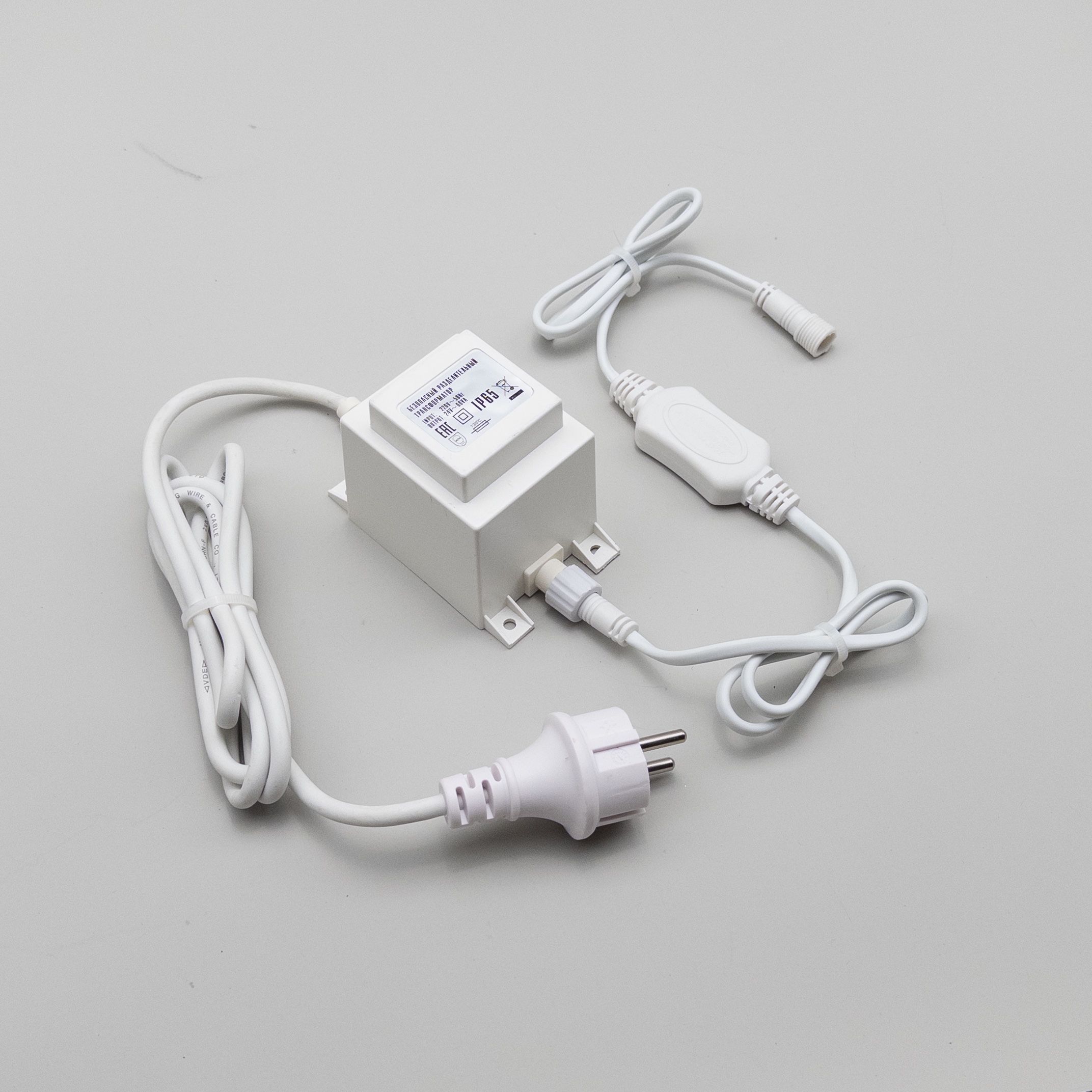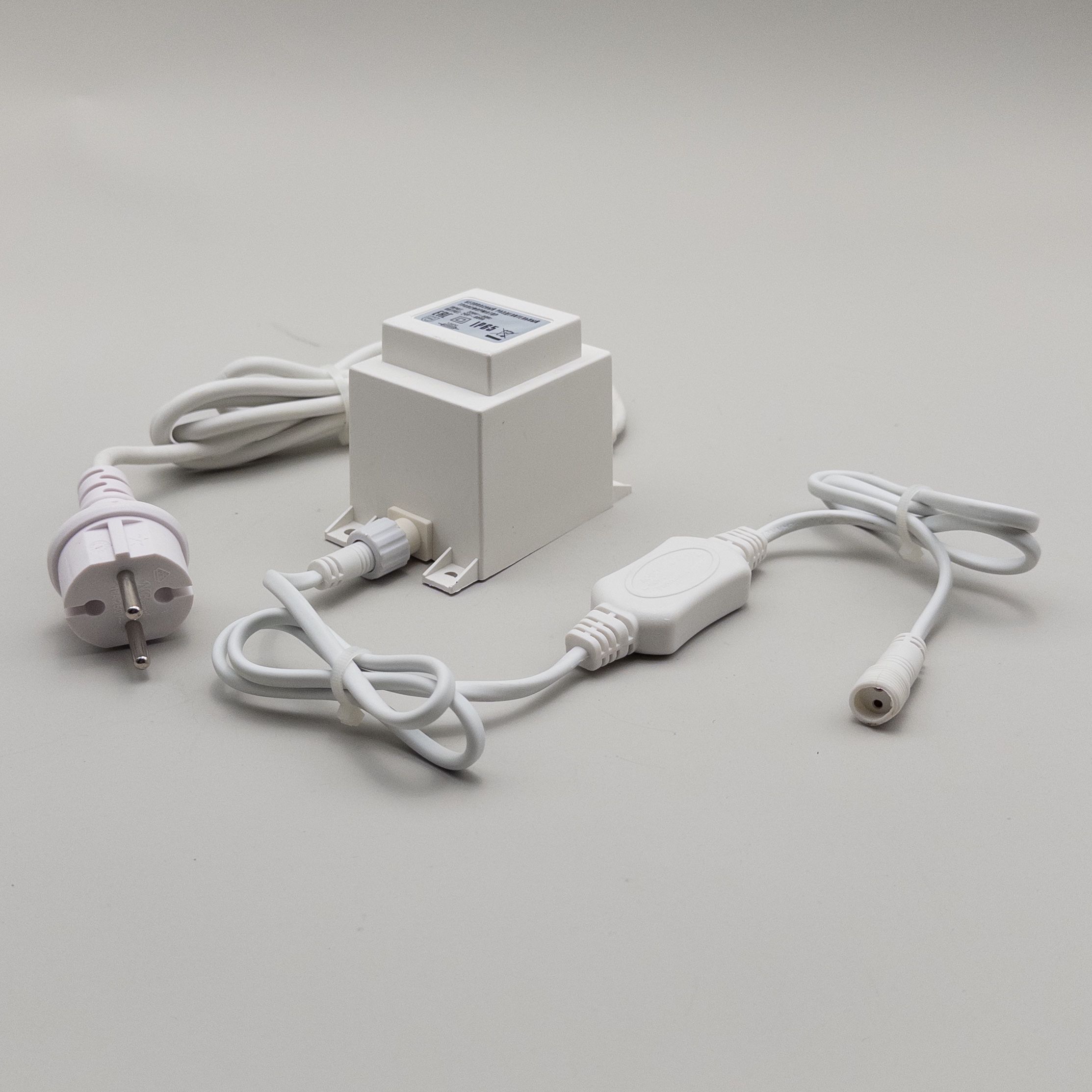 Трансформатор 60W с Выпрямителем для Нитей 24В, до 1000 LED, Провод Белый Каучук, IP65 LTC PTR60-3A-W в Магнитогорске