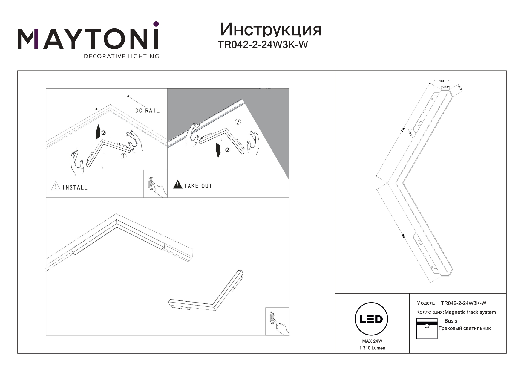 - Общая мощность: 24 W