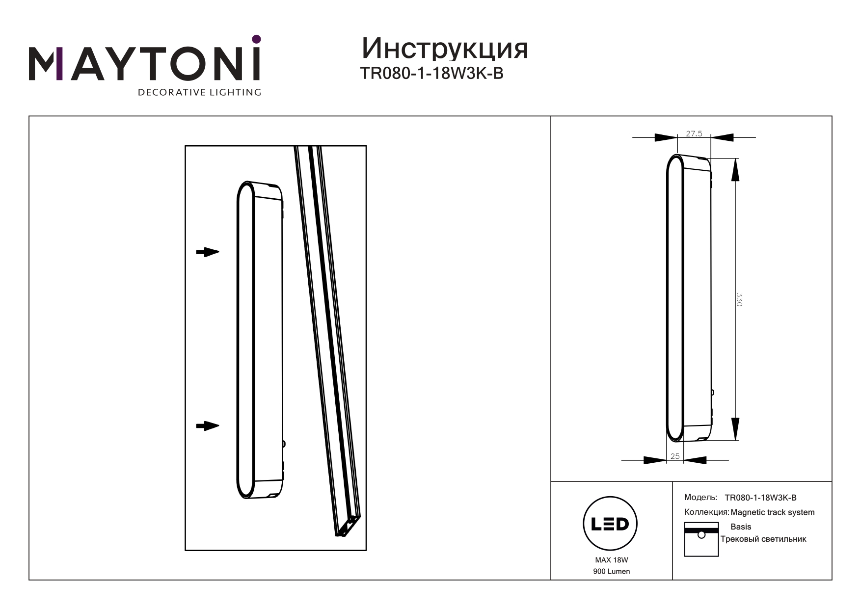 Трековый магнитный светильник Maytoni Basis TR080-1-18W3K-B в Магнитогорске