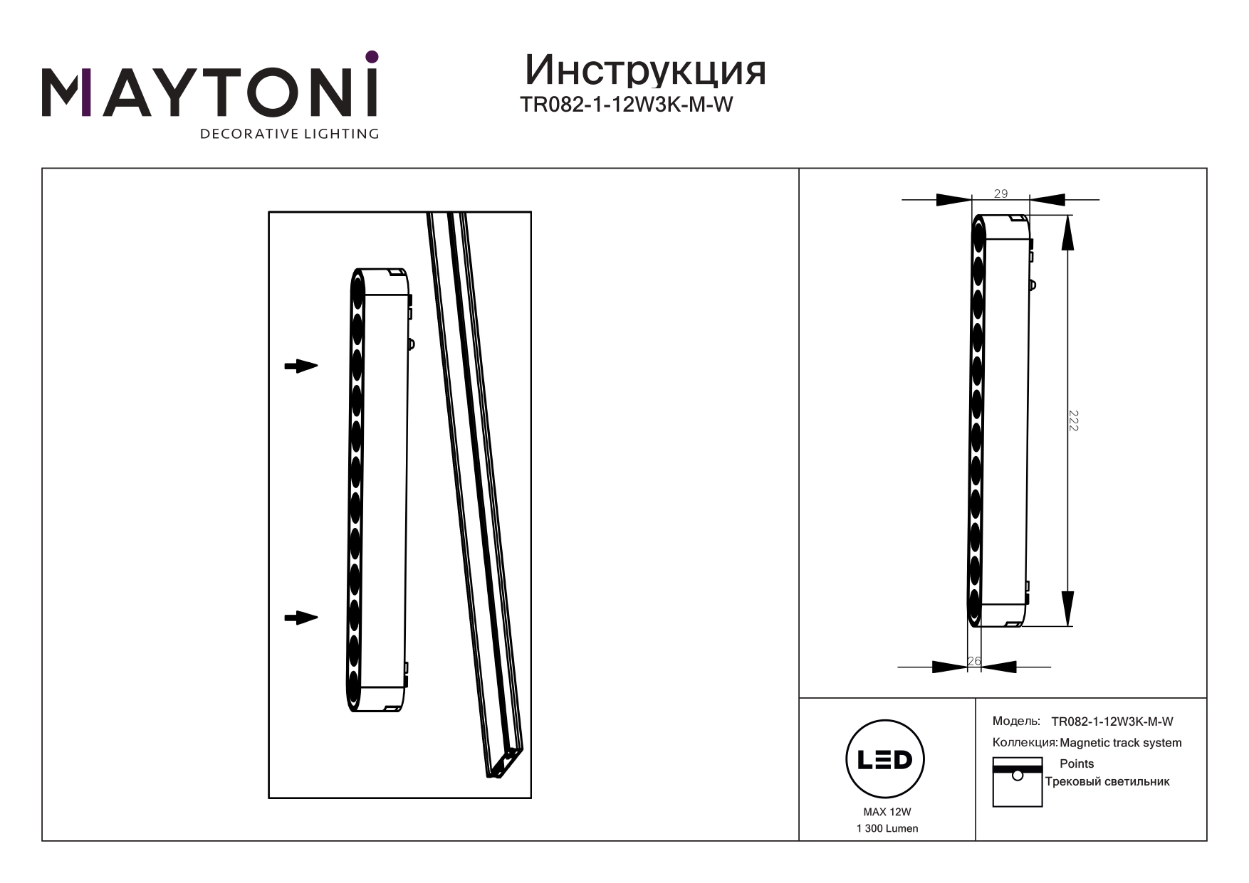Трековый магнитный светильник Maytoni Points TR082-1-12W3K-M-W в Магнитогорске