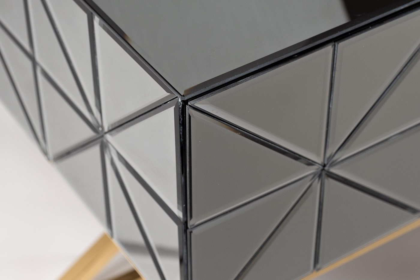 Неординарная тумбочка с выдвижным ящиком дополнит оригинальный интерьер спальни. Поверхность ее фасада собрана из небольших треугольных зеркал, что создает космическое впечатление. Мебель имеет основу из нержавеющей стали цвета золота. Скрещенные ножки гармонично дополняют дизайн зеркальной тумбочки, обеспечивая устойчивость. Представленная модель прекрасно подойдет для интерьера спальни в стиле неоклассики, арт-деко или фьюжн. Тумбочки компактны, поэтому даже в паре не займут много места. А вместительный ящик позволит хранить в нем все, что должно быть под рукой. Тумбу гармонично дополнят консоль арт. KFG113 и комод арт. KFG126 из этой же коллекции.