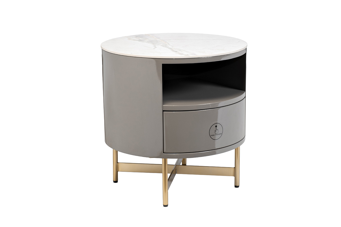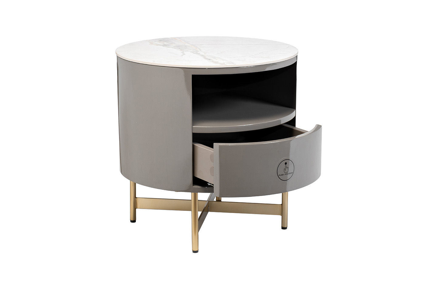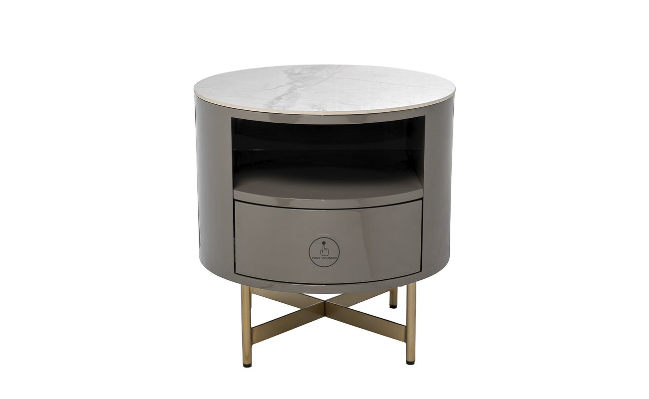 Стильная прикроватная тумбочка является неотъемлемой частью обстановки спальни. Это не только практичная и удобная мебель, но и способ сделать пространство более эстетичным и уютным. Компактная тумбочка с ящиком составит компанию кровати с велюровым изголовьем, хорошо справится с ролью подставки для светильника, заменит собой маленький журнальный столик. Она органично впишется в стилистику ар-деко, контемпорари, минимализм, неоклассика, фьюжн. За счет тонких ножек из металла модель визуально легкая, а столешница с эффектом камня подчеркивает ее оригинальный дизайн.