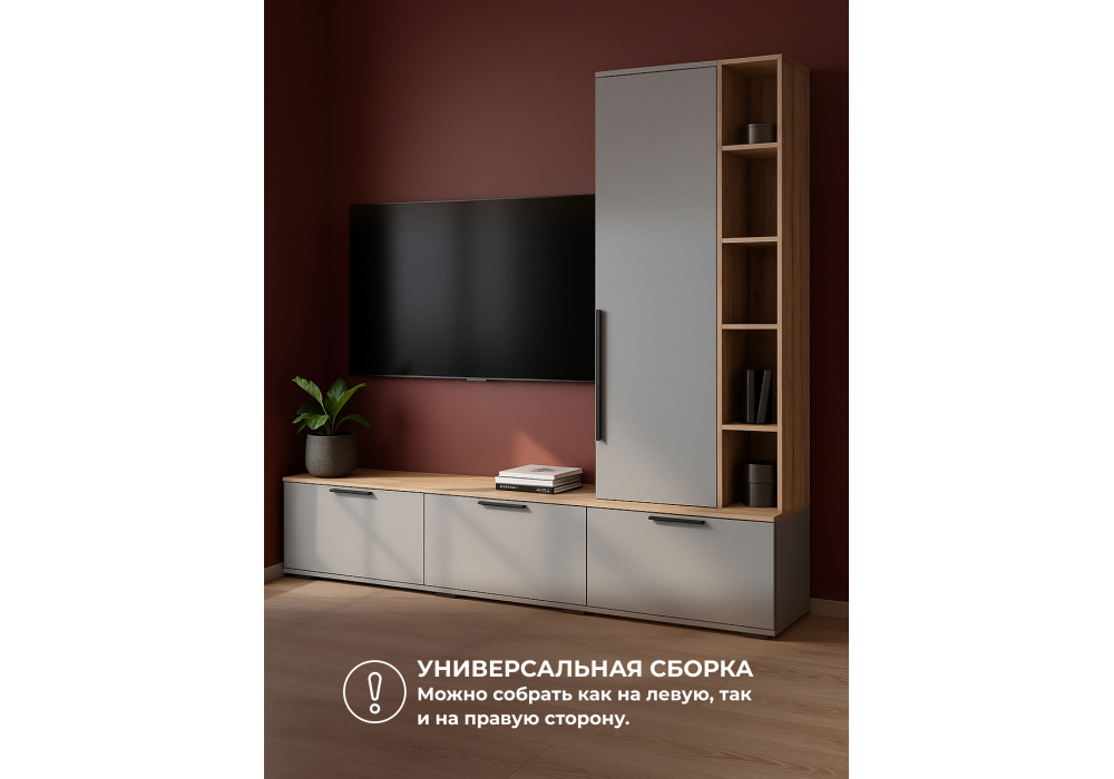 Купить "ТВ-тумба Woodville Филеста шиншилла серая / дуб вотан 664896"