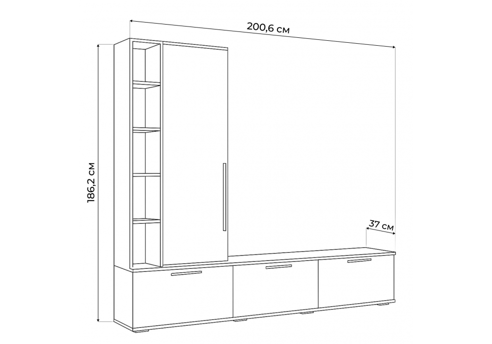 Материал каркаса - ЛДСП; Ширина - 200,6; Глубина - 37; Высота - 186,2;
