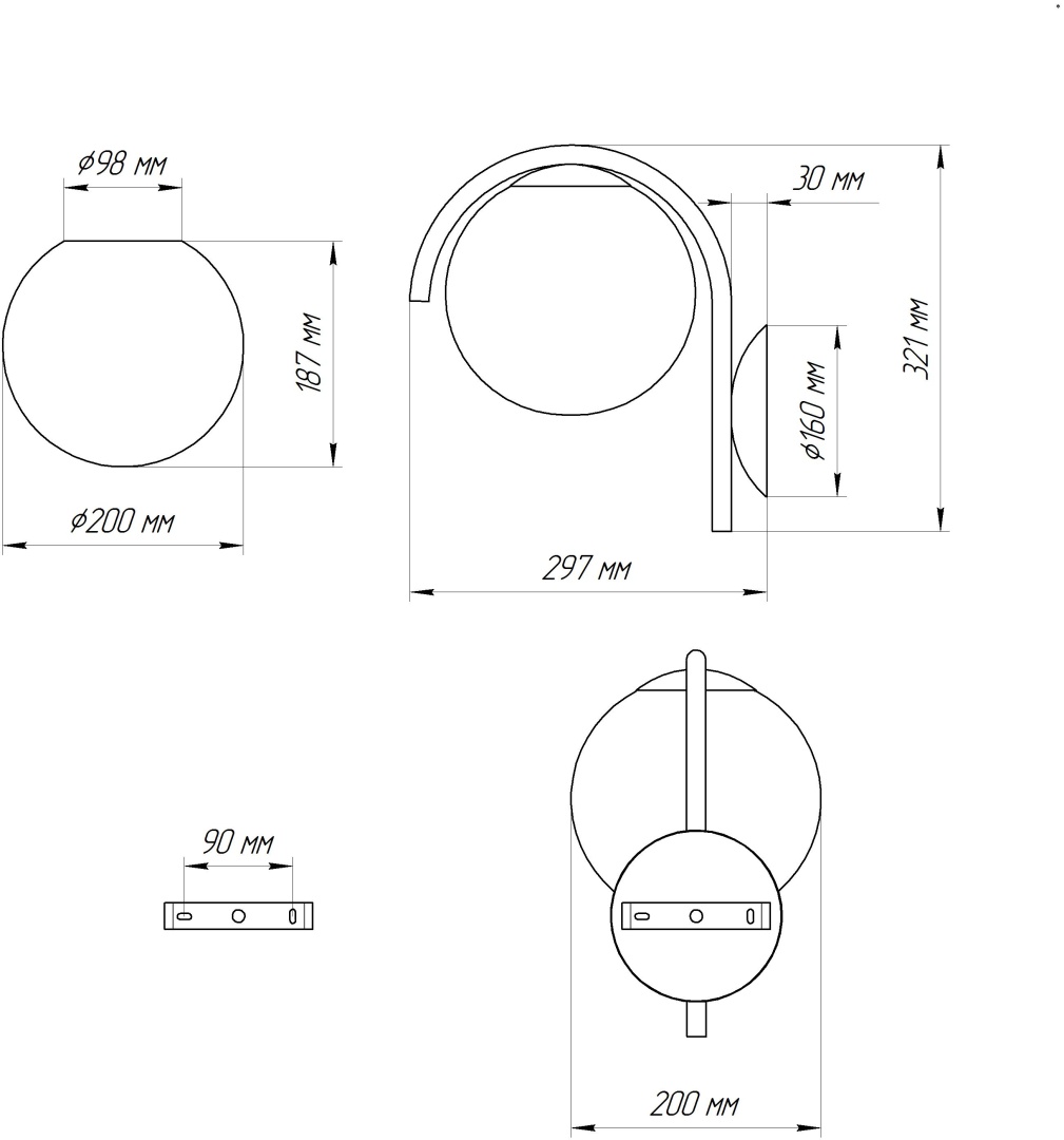 - Форма плафона: Шар