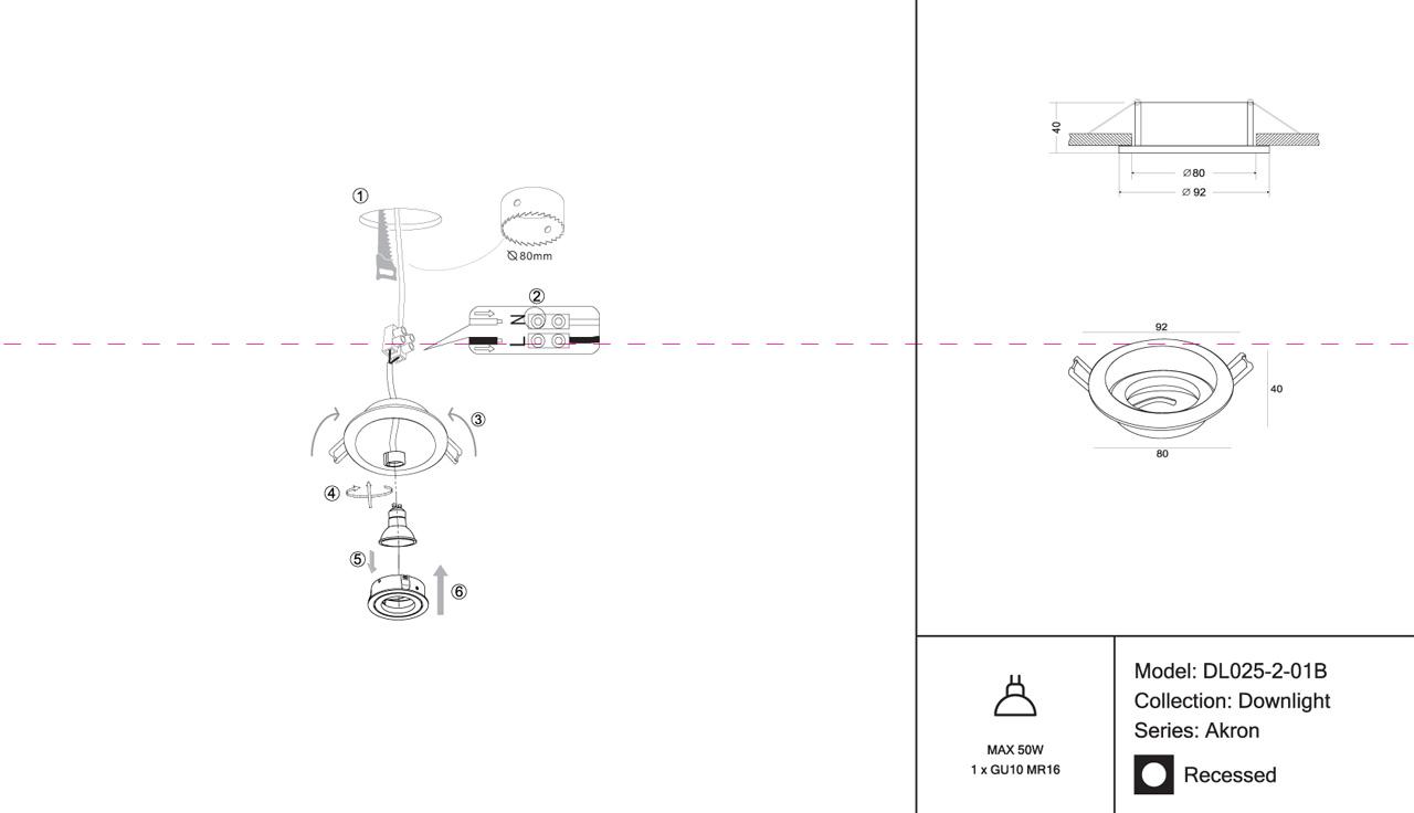 - Диаметр врезного отверстия: 80 мм (8 см)