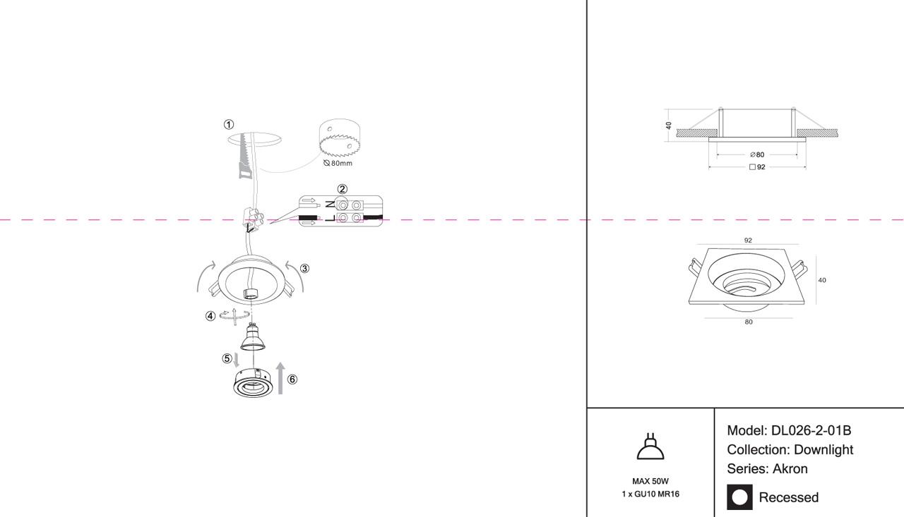 - Диаметр врезного отверстия: 80 мм (8 см)